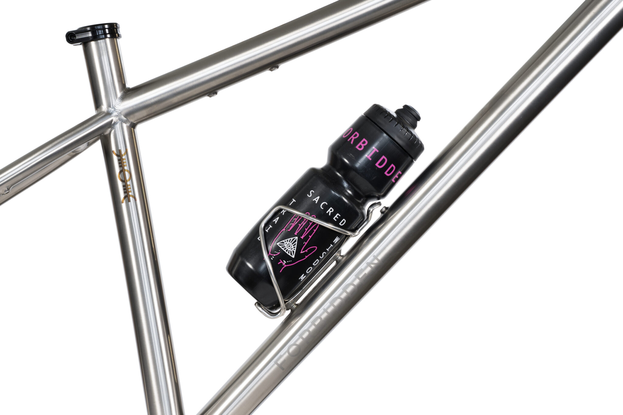 The ‘under the top tube’ mounting screws allow for the attachment of various accessory mounting solutions; pump, tools, a banana, the kitchen sink, go crazy, just don’t hang a water bottle there.