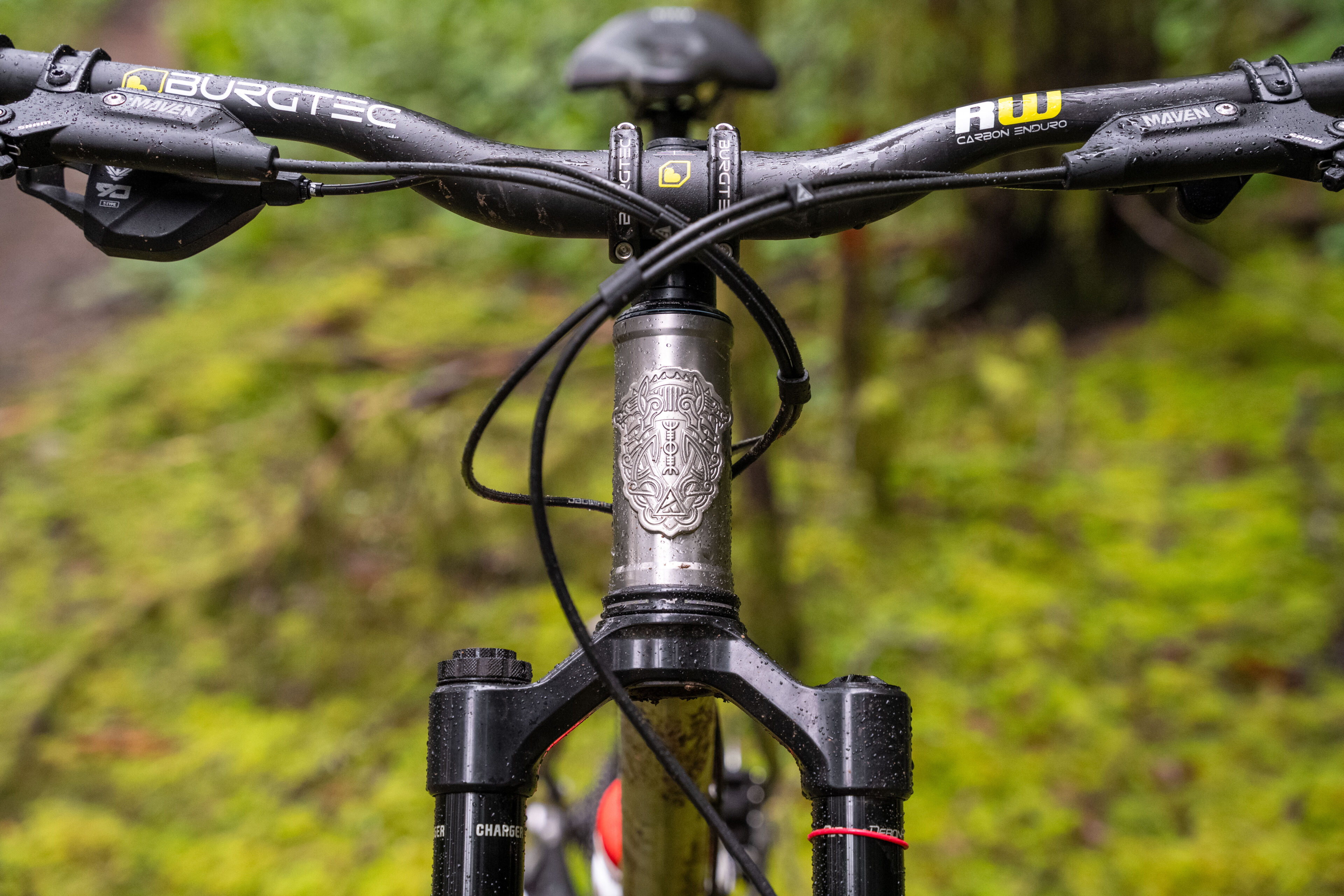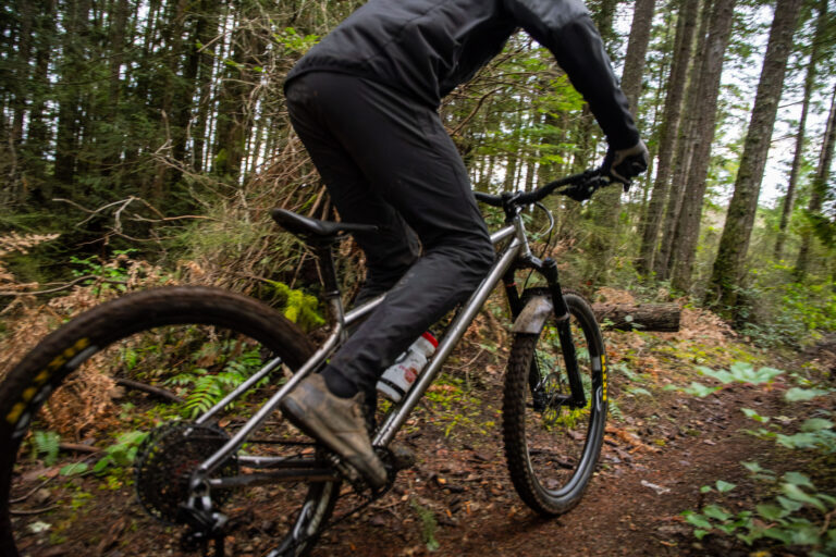 The slack head angle might raise eyebrows for a short-travel bike, but it’s deliberate. A shorter fork keeps the geometry consistent under compression. Meaning the Heathen remains composed when it matters most.