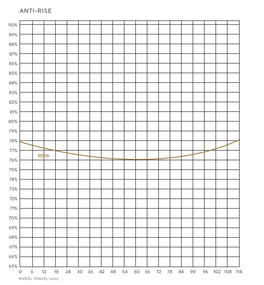 Like all of our bikes, Reya uses our OneRide geometry philosophy. Genuinely proportional rear centres across the size range. Something you won’t find on any other short travel bike. The benefits are the same as on all our bikes: better weight distribution, balanced suspension feel, and consistent front-to-rear tire grip.